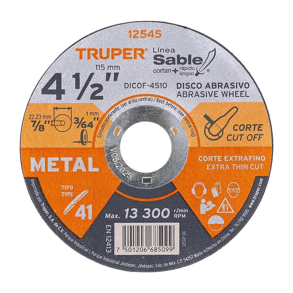 DISCO TIPO 41 CORTE FINO DE METAL LINEA SABLE 4 1/2" 1MM